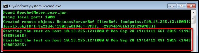 3、启动bin目录下的:jmeter-server.bat,启动成功如下图: