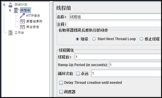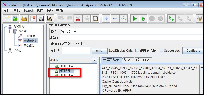 2、创建一个请求测试:创建一个访问百度的请求,访问次数为一次,配置如下: