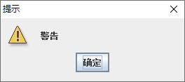 JOptionPane.showMessageDialog(null, "警告", "提示", JOptionPane.WARNING_MESSAGE);