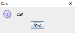 JOptionPane.showMessageDialog(null, "普通", "提示",JOptionPane.INFORMATION_MESSAGE);