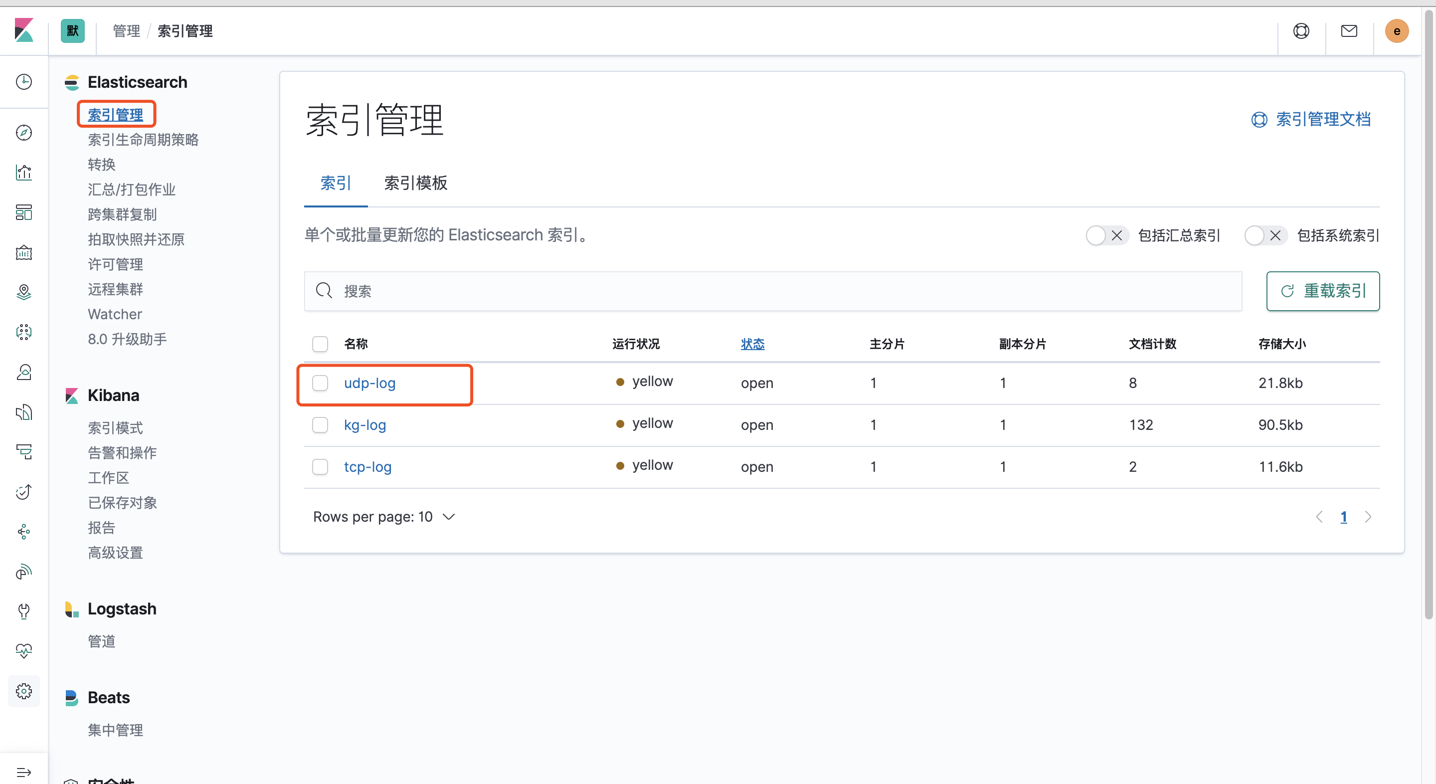 # 查看logstash中的数据收集情况