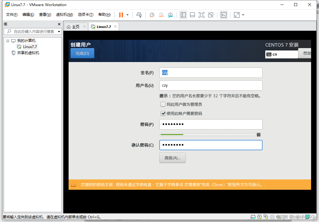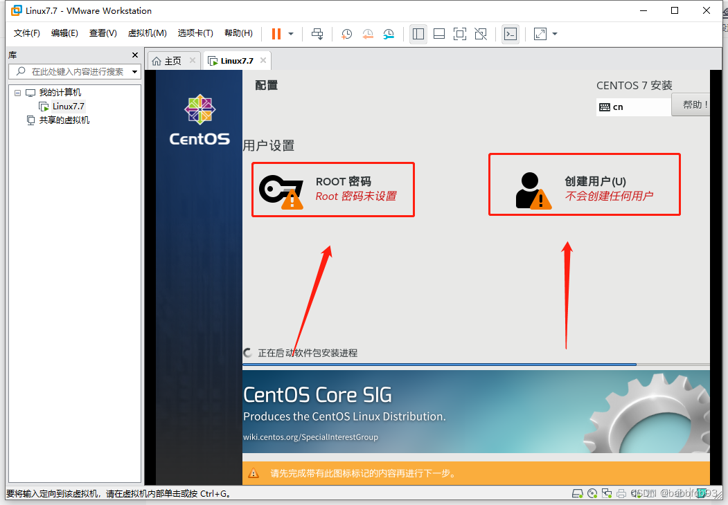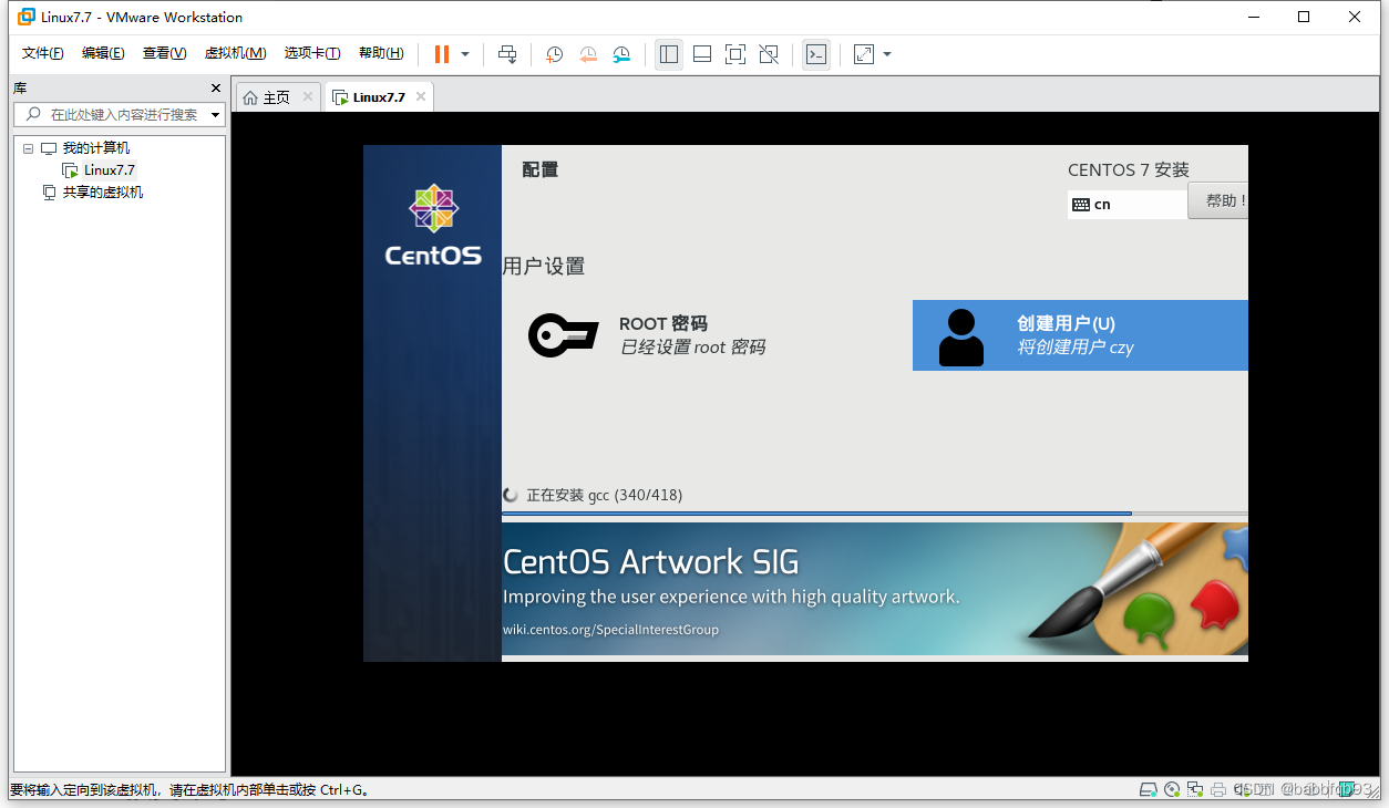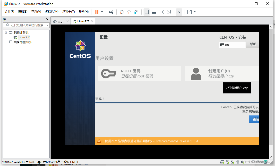 可以通过Ctrl+Alt切换当前本机鼠标和虚拟机鼠标。安装之后会进入配置文字阶段
