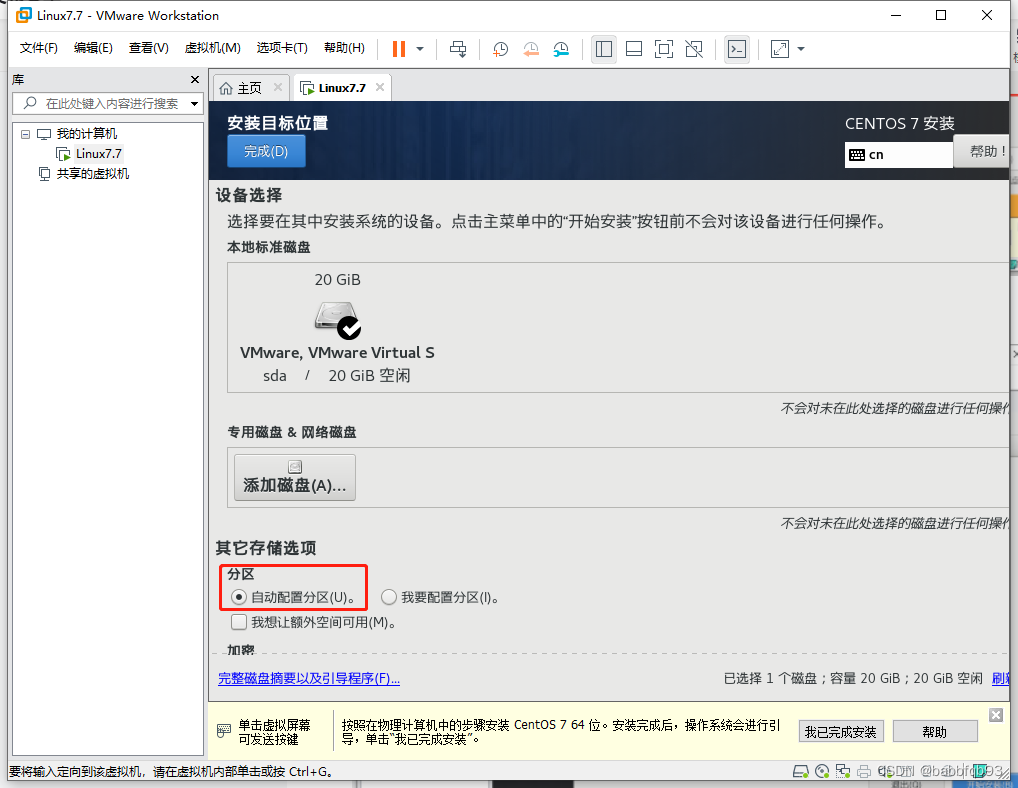 选择分区,分区分为自动或者手动,都可以,如果是自动则