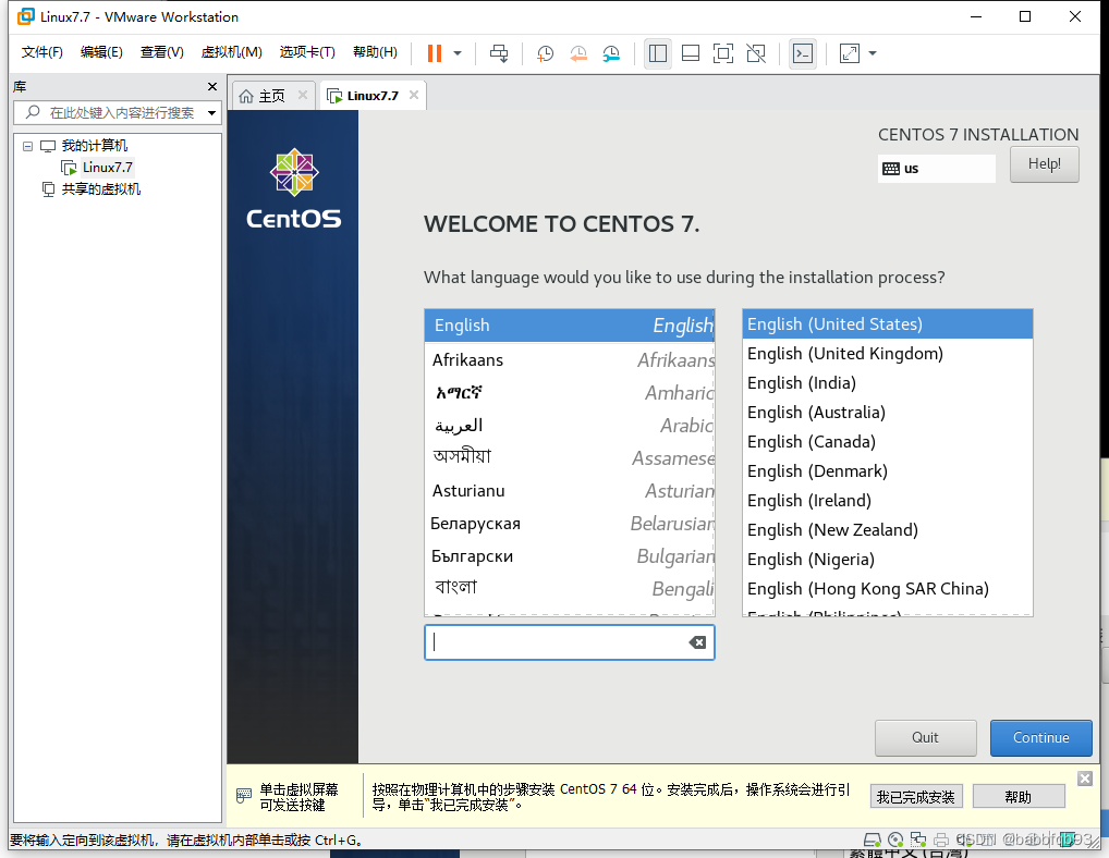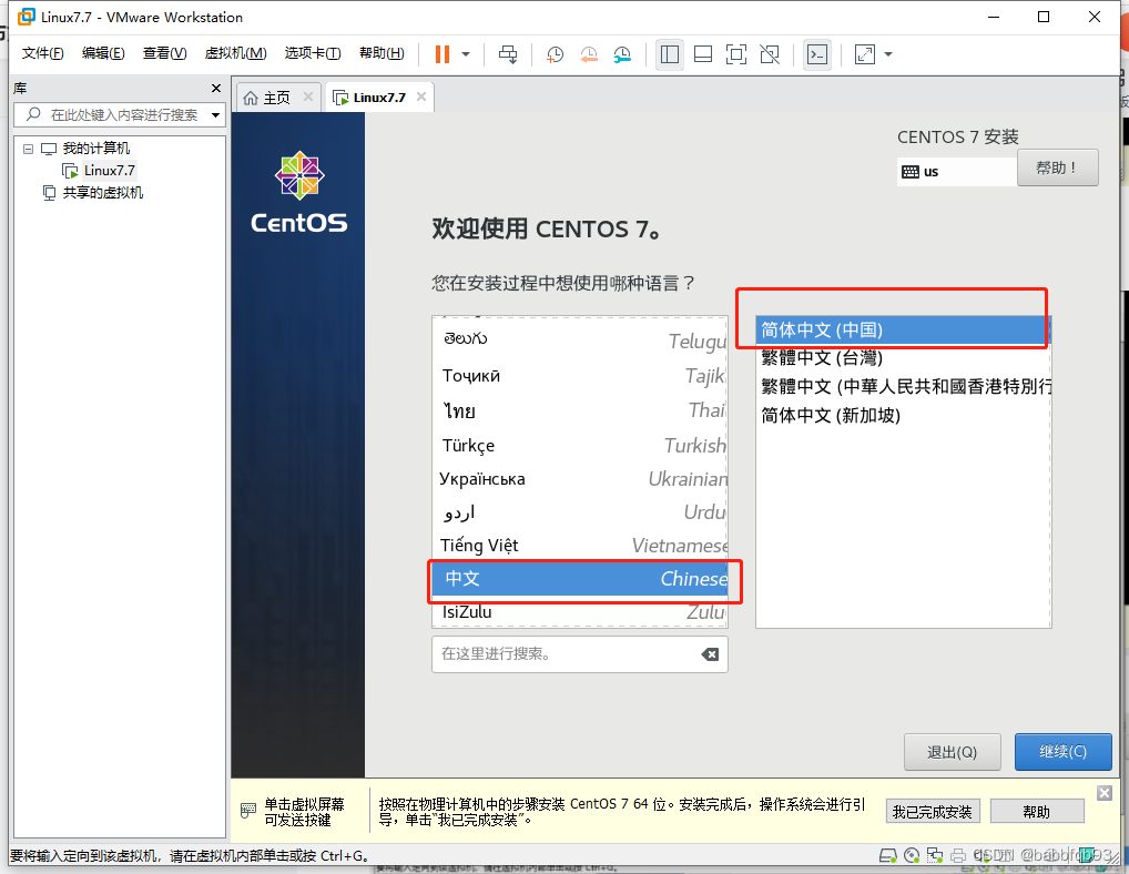 选择安装CentOS7