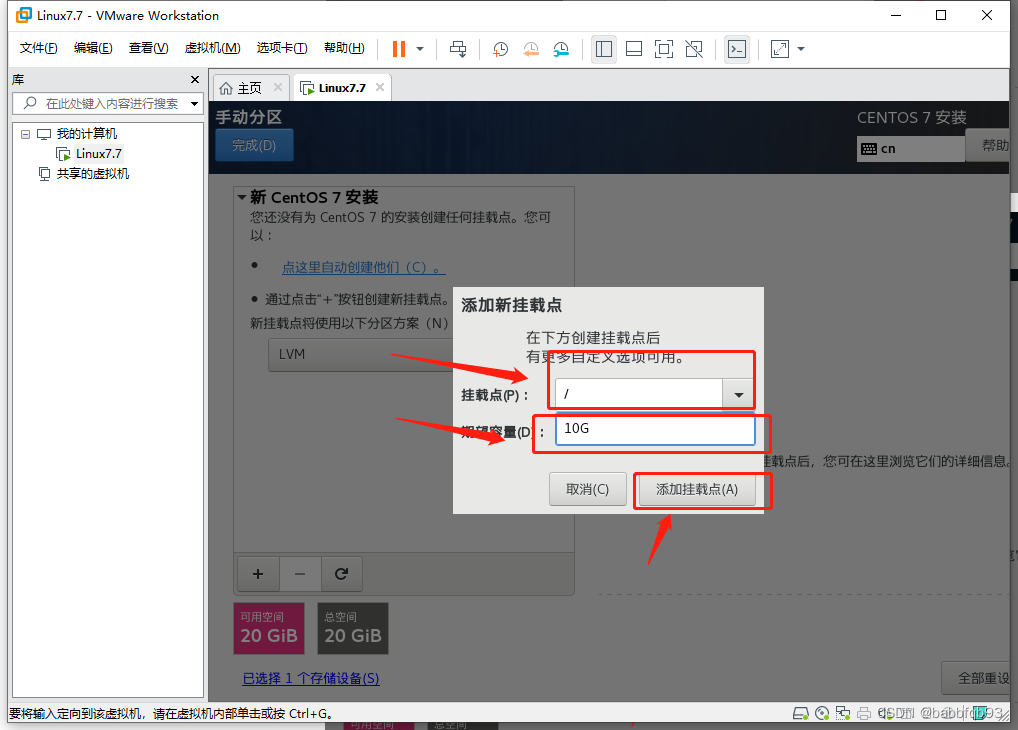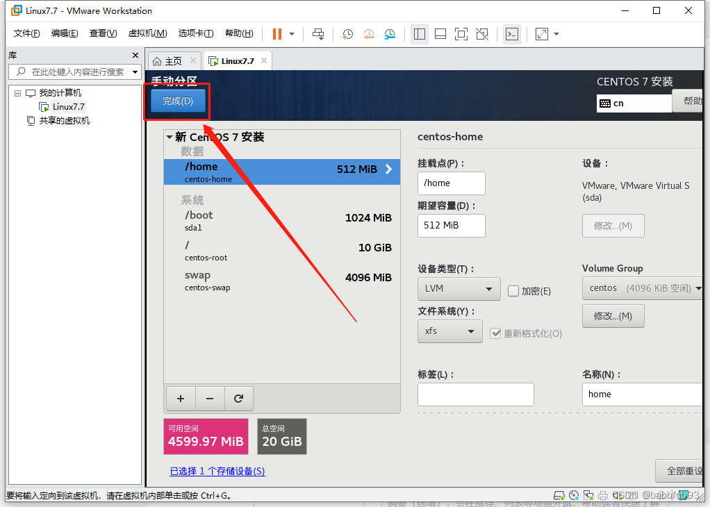 新增玩三个挂点后可以新增/home分区