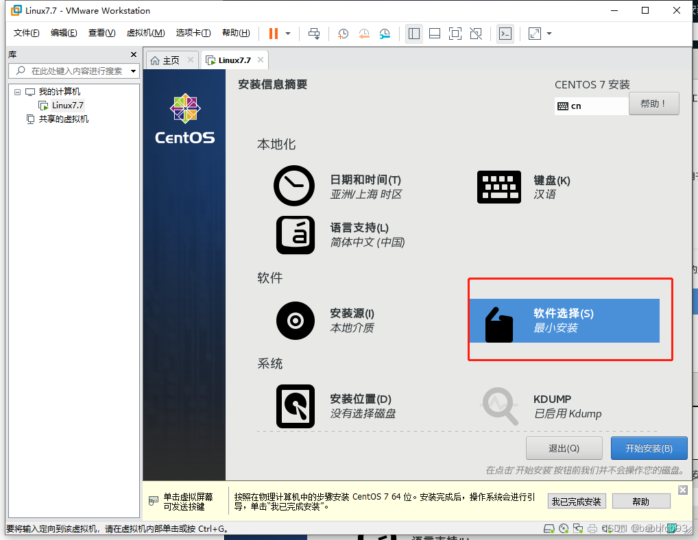之后选择 软件安装 最小安装