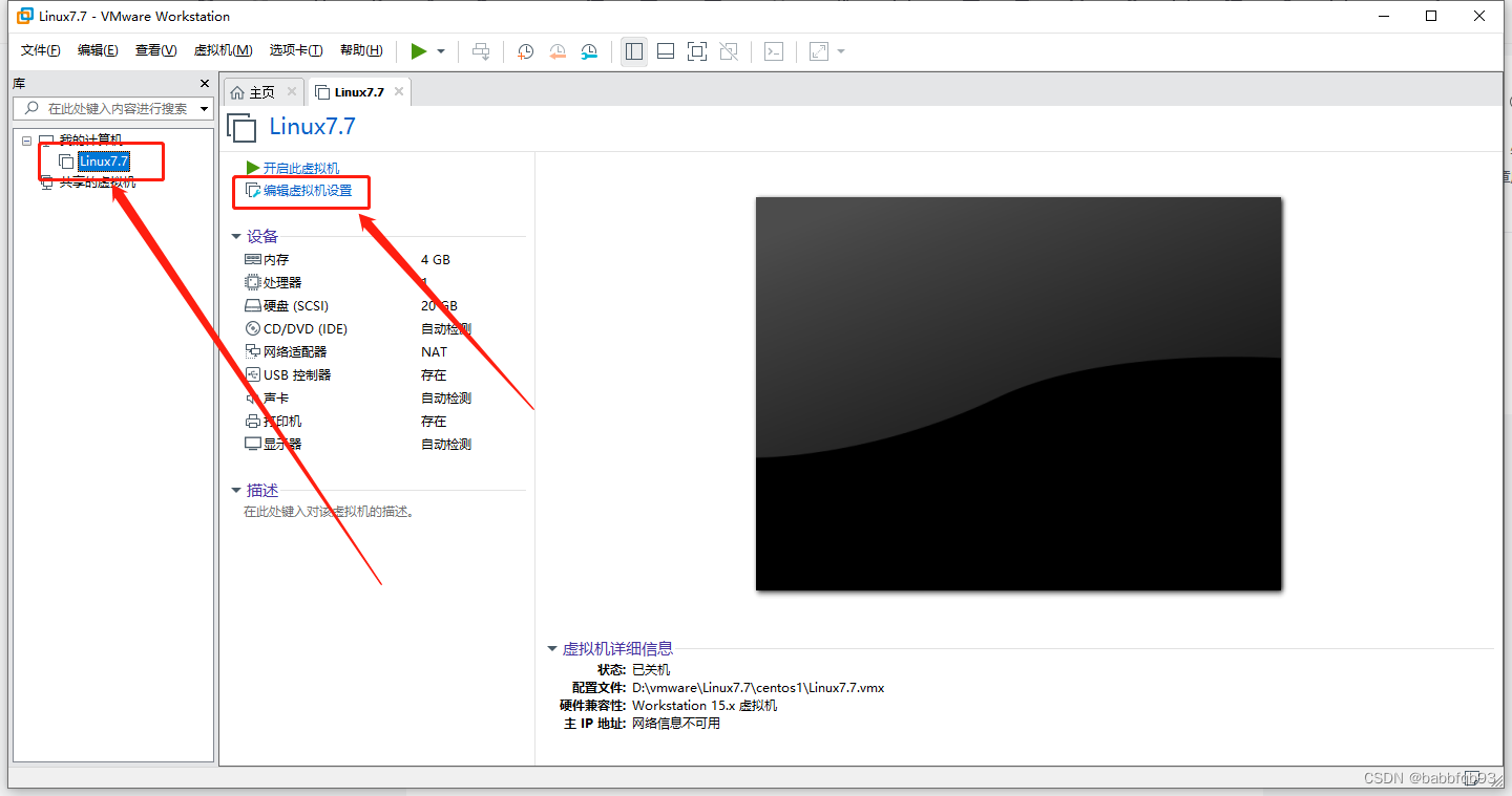完成之后会在左侧出现我们新增的虚拟机,选择编辑虚拟机