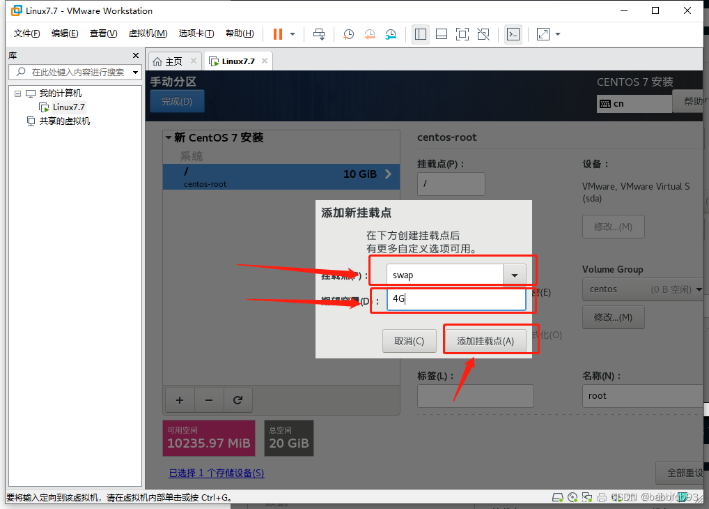 如果是手动分区,则: