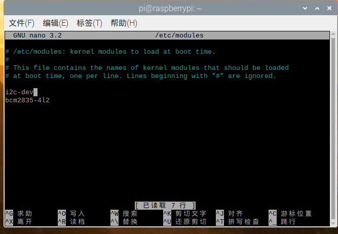 sudo nano /etc/modules #nano后有空格
