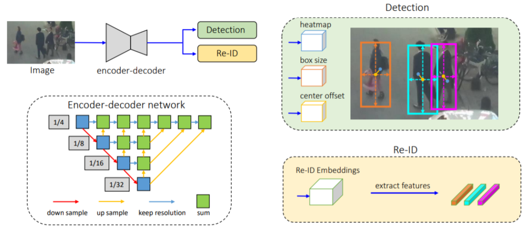 文章中提出解决该问题的方法,是通过将MOT问题看作为在高分辨率特征图上的像素级关键点(目标中心)估计和 id 分类问题。