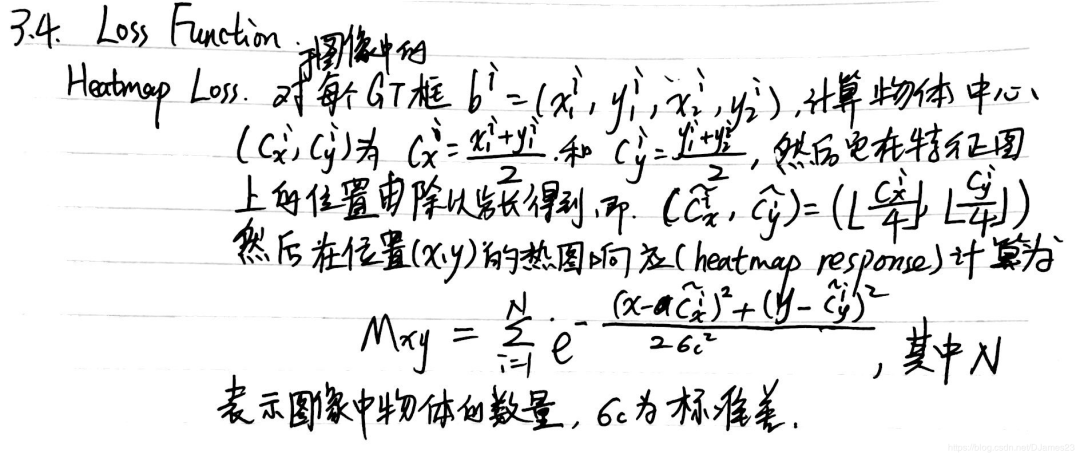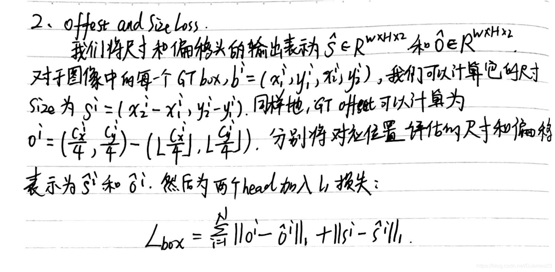 本方法中将目标检测视为高分辨率特征图上基于中心的包围盒回归任务。特别是,将三个并行回归头(regression heads)附加到主干网络以分别估计热图,对象中心偏移和边界框大小。 通过对主干网络的输出特征图应用3×3卷积(具有256个通道)来实现每个回归头(head),然后通过1×1卷积层生成最终目标。
