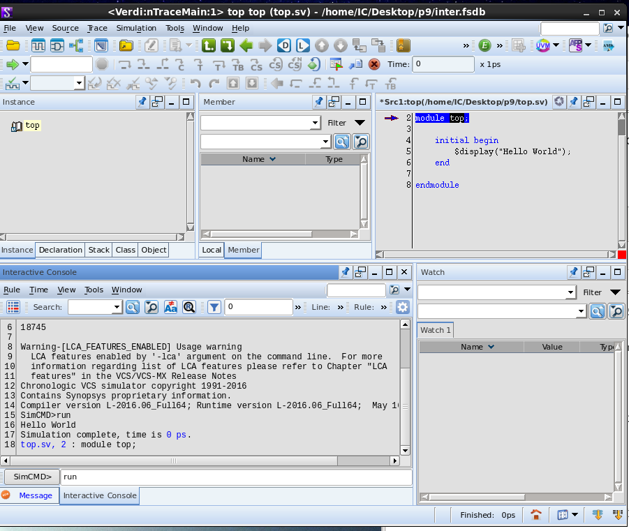 export LD_LIBRARY_PATH=$Verdi_HOME/share/PLI/VCS/linux:$LD_LIBRARY_PATH其中Verdi_HOME为Verdi的安装目录,linux64或linux根据实际决定;配置完成后,打开就可以正常工作: