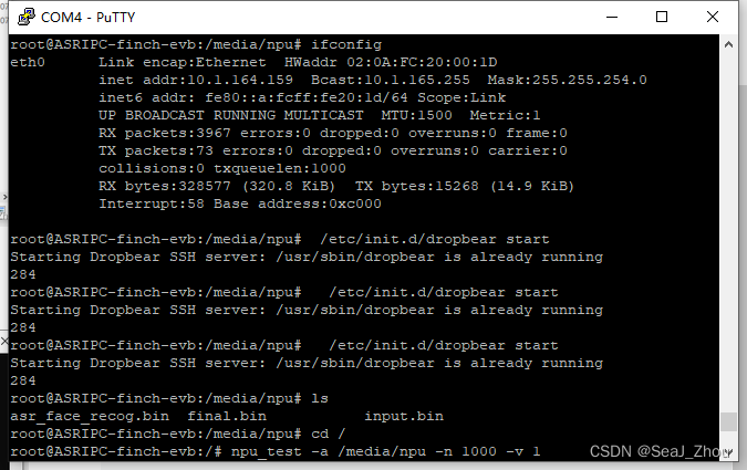 2.putty串口中输入 /etc/init.d/dropbear start