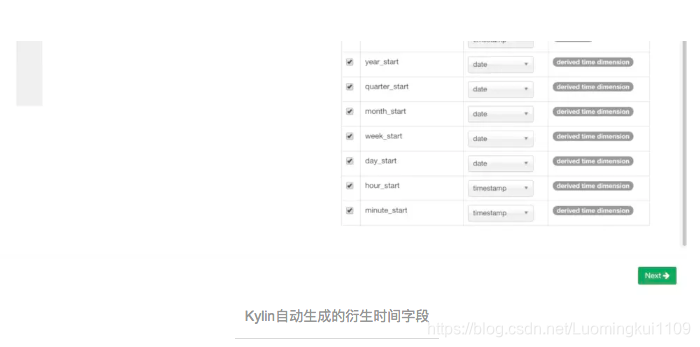 ①业务时间戳的粒度太细,无法在时间维度上完成深度的聚合,Kylin会自动帮我们生成一些衍生时间字段,这些衍生时间字段的值都来源于业务时间戳。