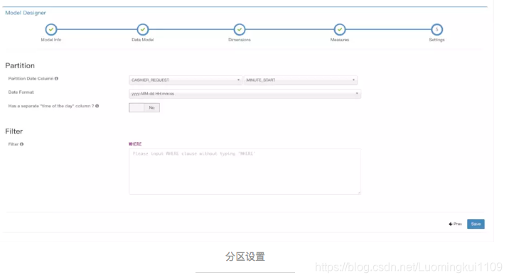 Model的设置跟非流式构建的步骤基本一样,只是在分区设置的时候必须指定一个分区字段,一般选择最小粒度的衍生时间字段(Why?)。