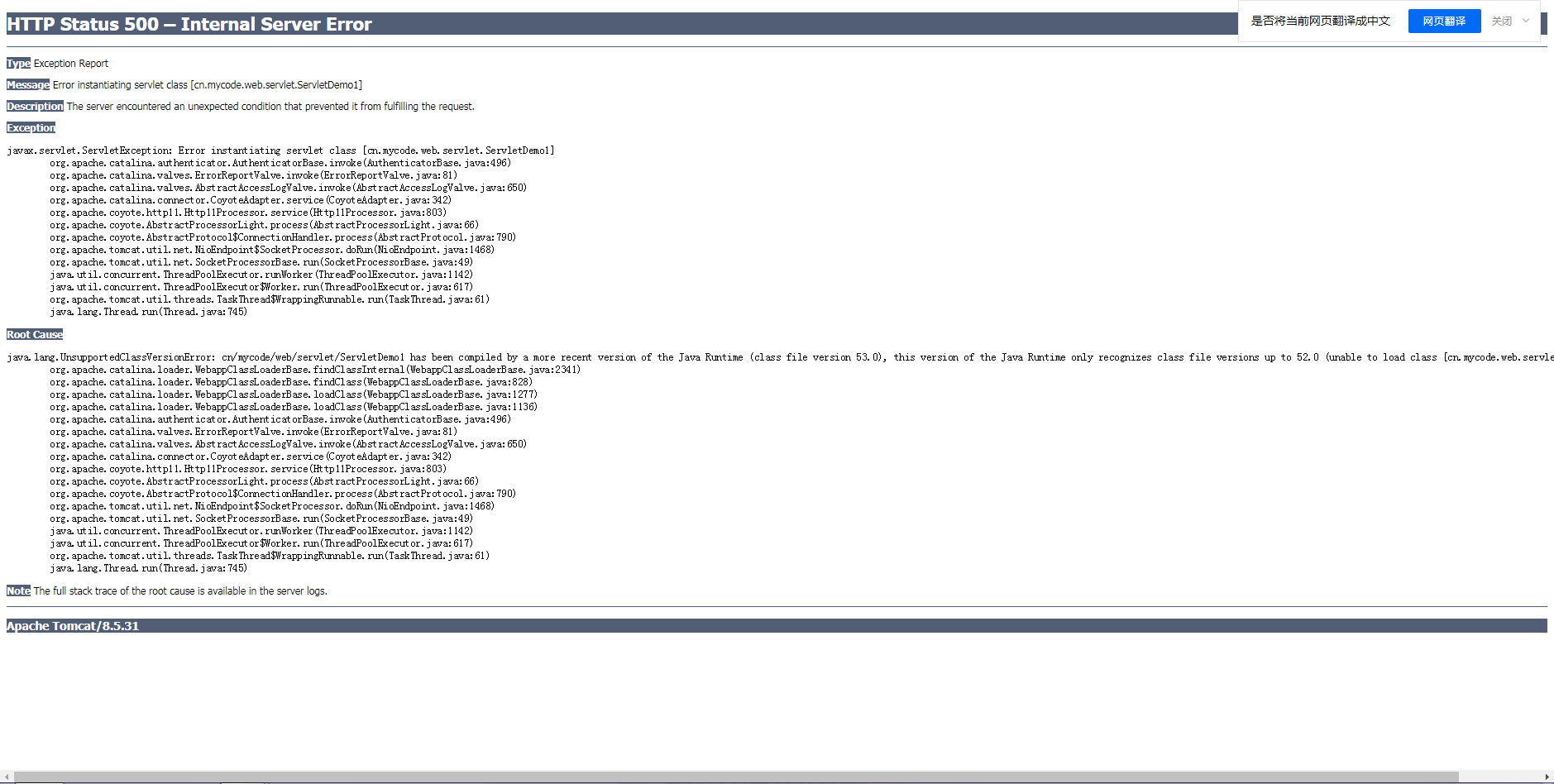 HTTP Status 500 - Error instantiating servlet class XXXX类
