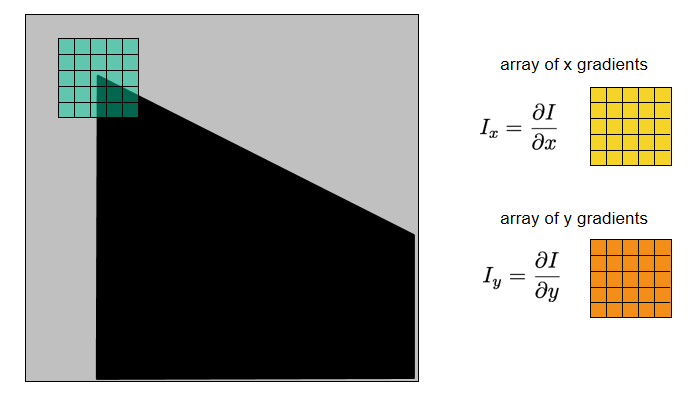 如上图,通常我们会定义一个窗口,在窗口内计算x方向和y方向的梯度Ix, Iy。