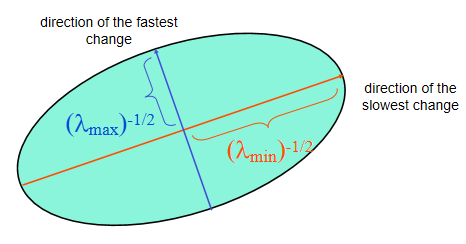 可以看到该公式的几何表示是一个椭圆。注意到M是对称阵,将M三角化,