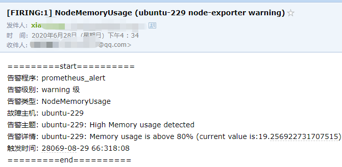如果没有收到邮件,请确保上面的配置参数正确。查看alertmanager日志,是否有报错信息。