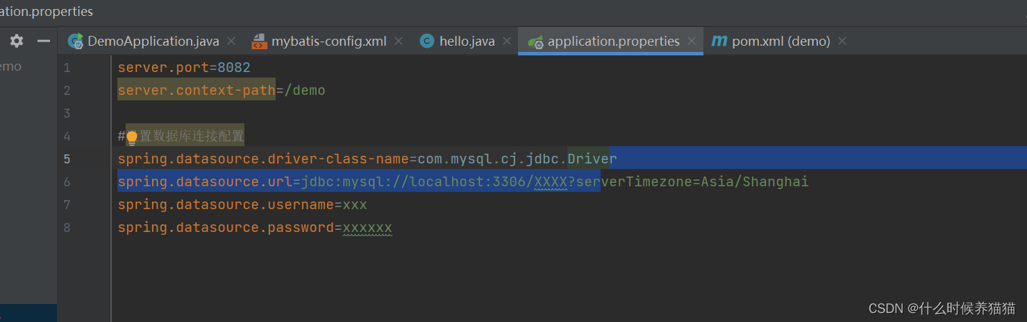 创建完相当于我们的ioc里面有了一个bean叫dataSource,然后这个bean返回的是数据库的连接池。然后我们要建一个这个dataSource的实体类,然后去设置它的驱动,本地连接,还有我们的用户名,密码等。这些东西需要去我们的配置文件里写,写它具体的驱动,还有具体的内容。我们的这个类通过@value+配置文件里对应的名字,往这个bean里面注入内容。