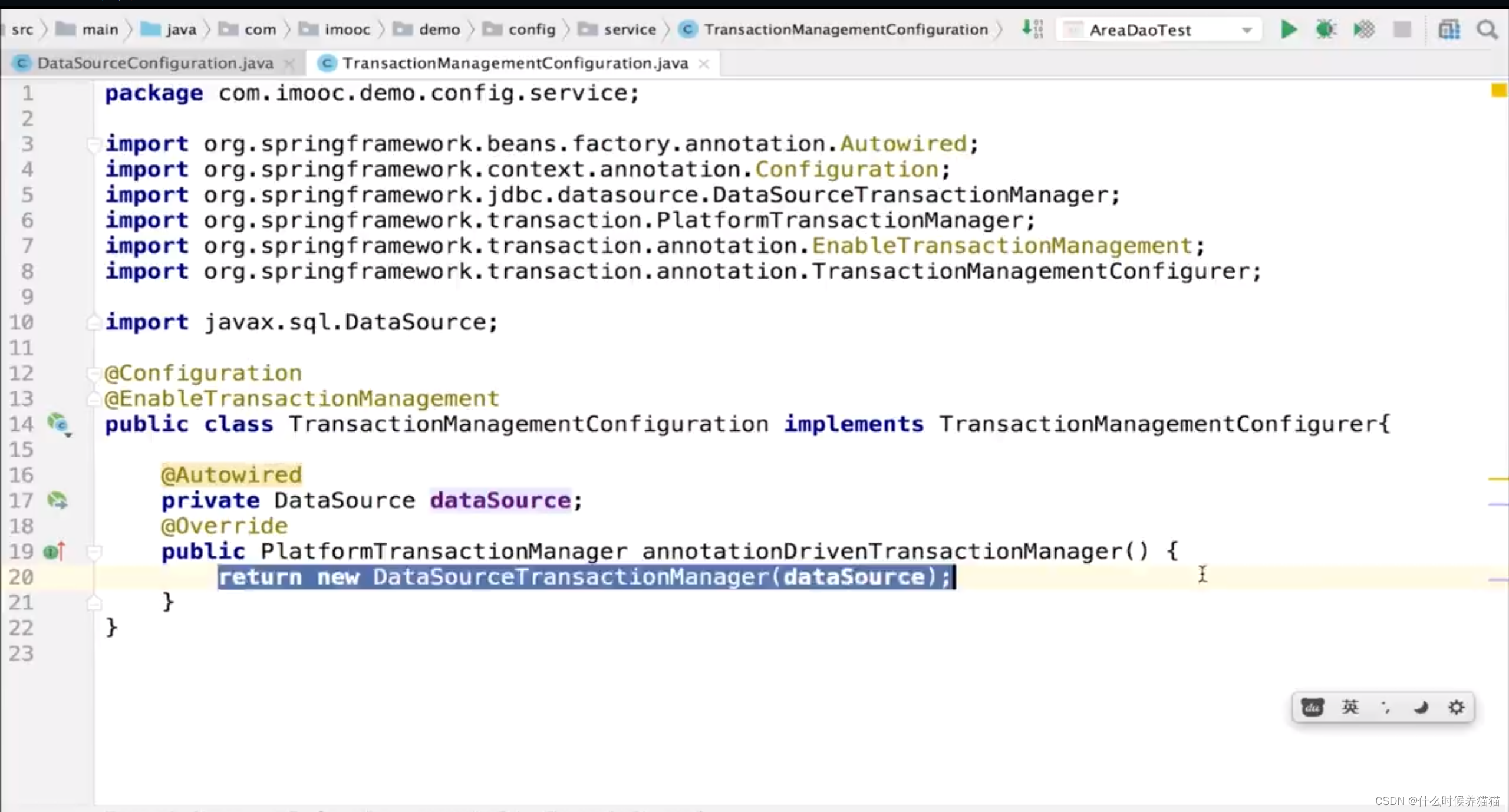 然后我们创建的这个类是继承TransactionMangrmentConfiguration的,