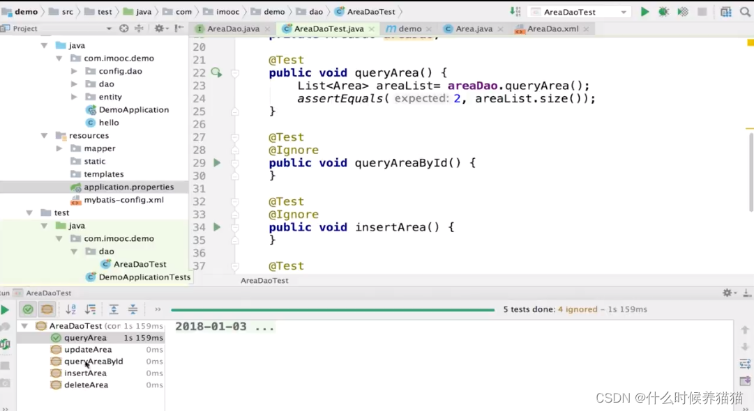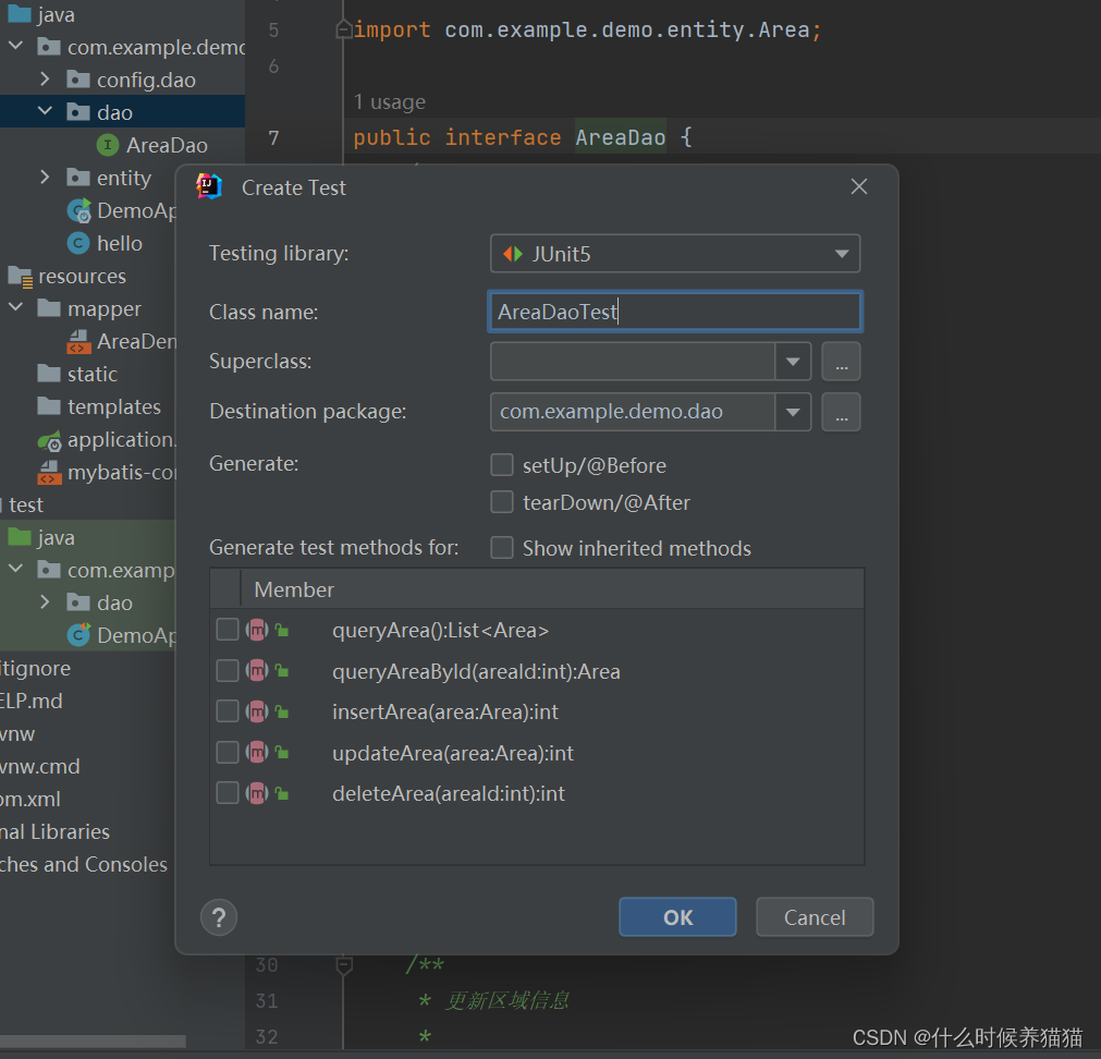 然后我们在类里创建一个AreaDao接口类的成员,通过@Autowired注入。