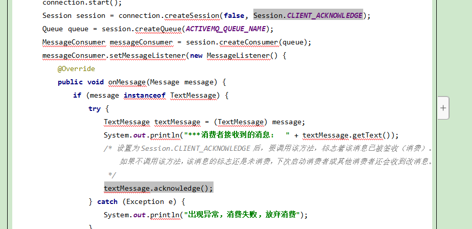 关闭事务后,签收机制会生效,需要设置有效的自动签收还是手动签收
