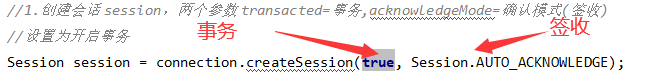 Session session = connection.createSession(true, Session.AUTO_ACKNOWLEDGE);