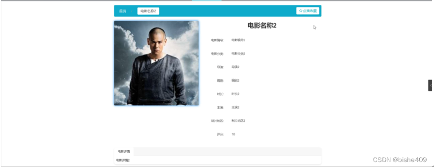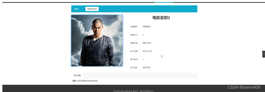 电影信息,在电影信息页面可以查看电影编号、电影名称、电影分类、海报、导演、编剧、时长、主演、制片地区、评分等信息,如图4-3所示。