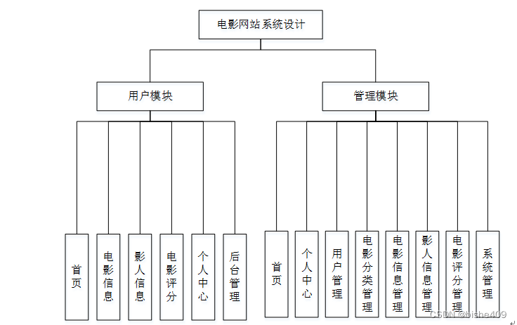 这些功能可以充分满足电影网站系统设计的需求。此系统功能较为全面如下图系统功能结构如图3-3所示。