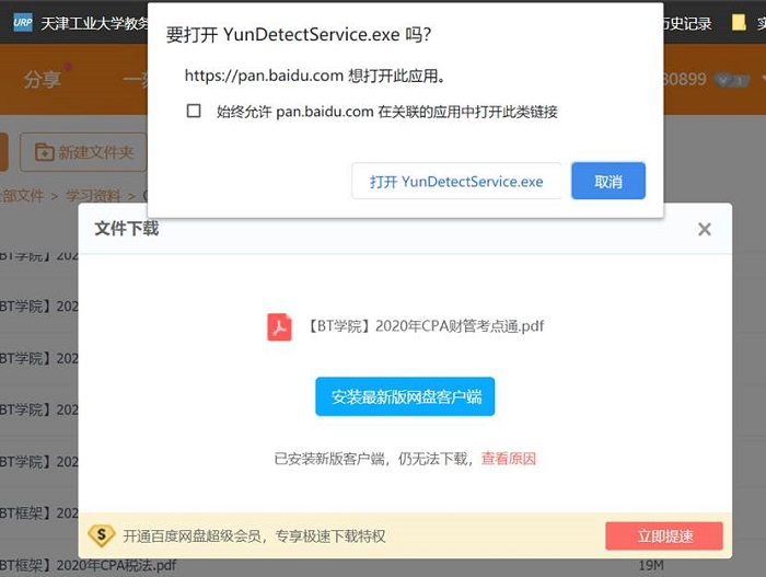 但是这个方法有一定的限制条件,那就是下载的文件得小于100MB,否则需要安装百度网盘客户端进行下载(多损呀),不过也并非没有破解之法,只是操作步骤稍微麻烦些,如果想要无限制的下载百度网盘的大文件,需要通过安装油猴脚本和百度盘助手插件来实现下载。