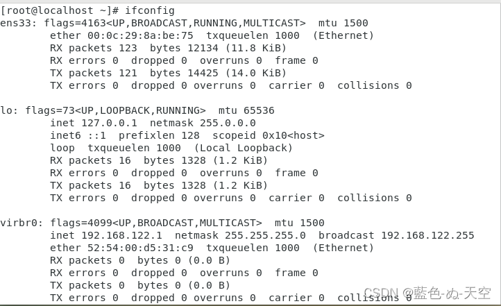 1.ifconfig查看ens33中没有ip