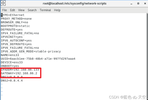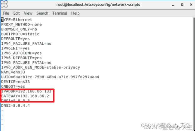 vi ifcfg-ens33