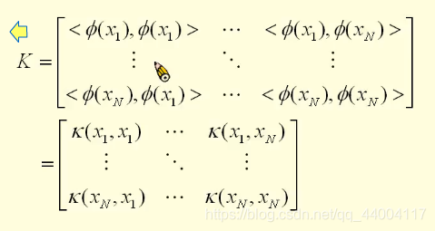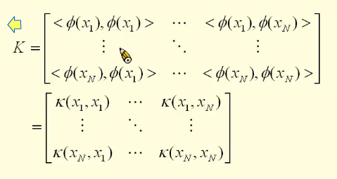 在高维空间中计算内积,形成内积矩阵,并用核函数表示。