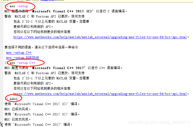 mex -setup→mex -setup C++(按要求选择安装编译器)→make(需在libsvm工具包下)