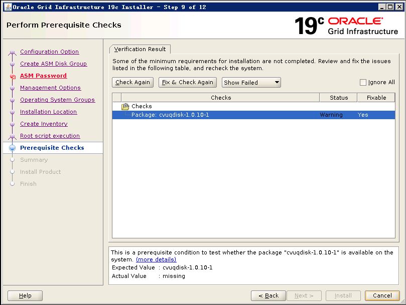 缺少cvuqdisk-1.0.10-1软件包