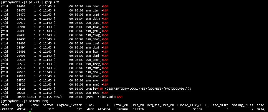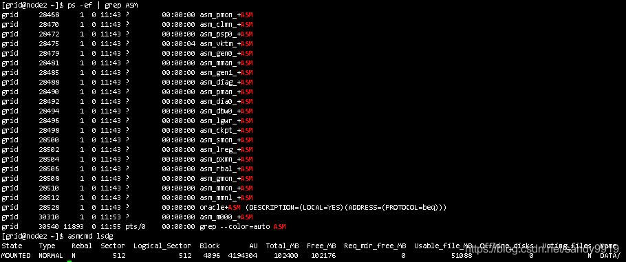 查看asm进程、磁盘组状态