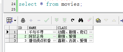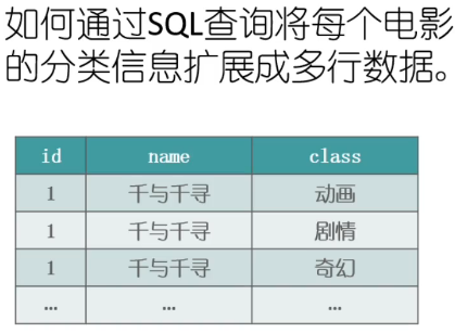 SELECT m.name,t.column_value FROM movies m,TABLE(SPLIT(m.class,'、')) t;