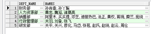 SELECT d.dept_name,wm_concat(e.emp_name) FROM employee e