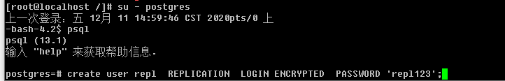 create user repl REPLICATION LOGIN ENCRYPTED PASSWORD 'repl123';