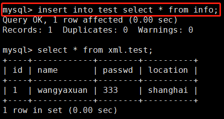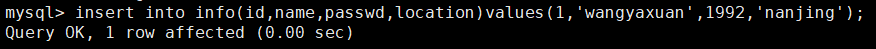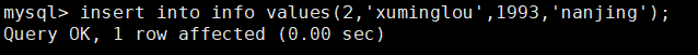 Query OK, 1 row affected (0.00 sec) (查询OK, 1行受影响(0.00秒))