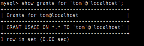 查看从本地登录的tom用户的权限