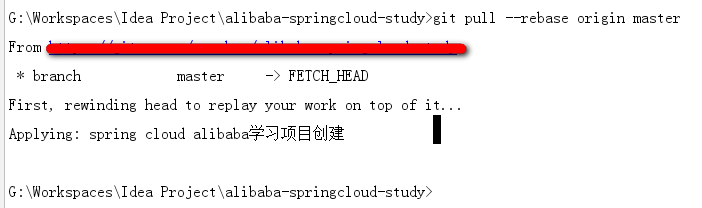 执行成功会将远程分支与本地分支合并,如果远程分支不为空,必须执行这一步,否则后面的提交会失败(idea的界面操作无法实现这个功能,只能是用命令行的形式)。