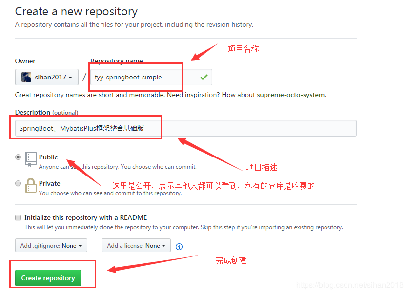 3、在git上创建远程仓库