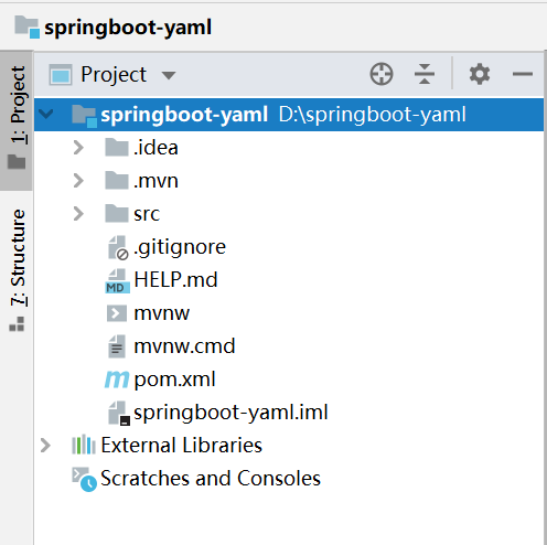 1.首先,新建springboot项目,命名为springboot-yaml。(创建项目的步骤在此不做叙述)创建成功之后,我们会有如下的项目结构。