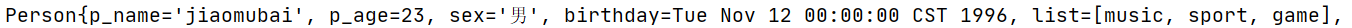 public Person(String p_name, int p_age, String sex, Date birthday, List<Object> list, Boolean happy, Map<String, Object> map, Dog dog) {
