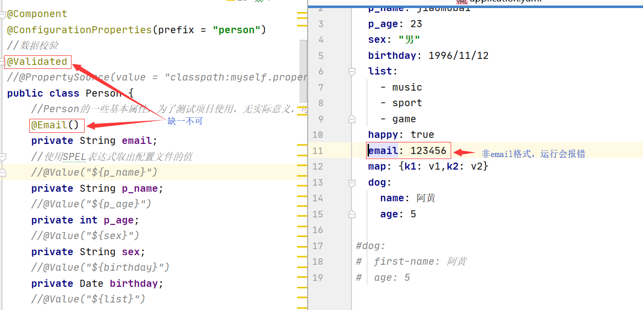 JSR303数据校验:其实就是在字段上加一层过滤器验证,保证数据的合法性。如,我们再给person一个新的属性email。