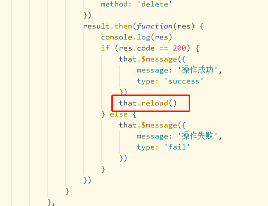 3、在执行增删改操作成功后,调用父组件的reload方法实现刷新页面