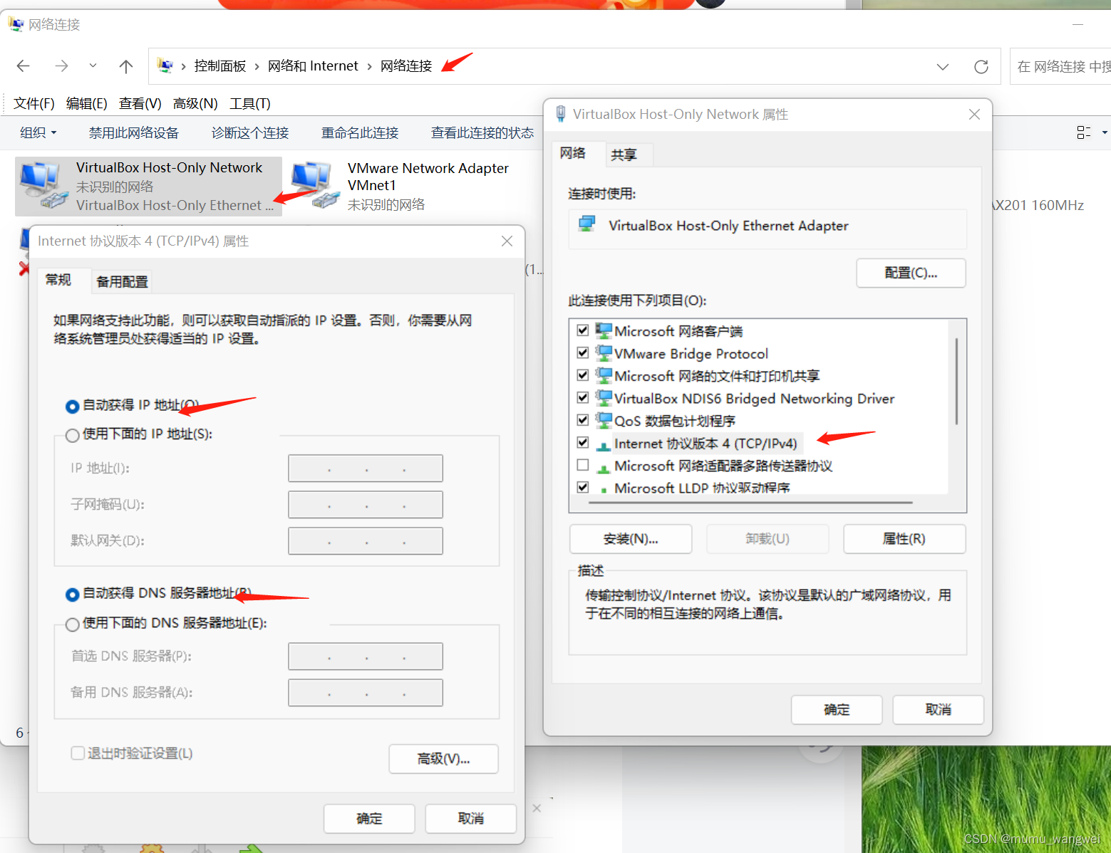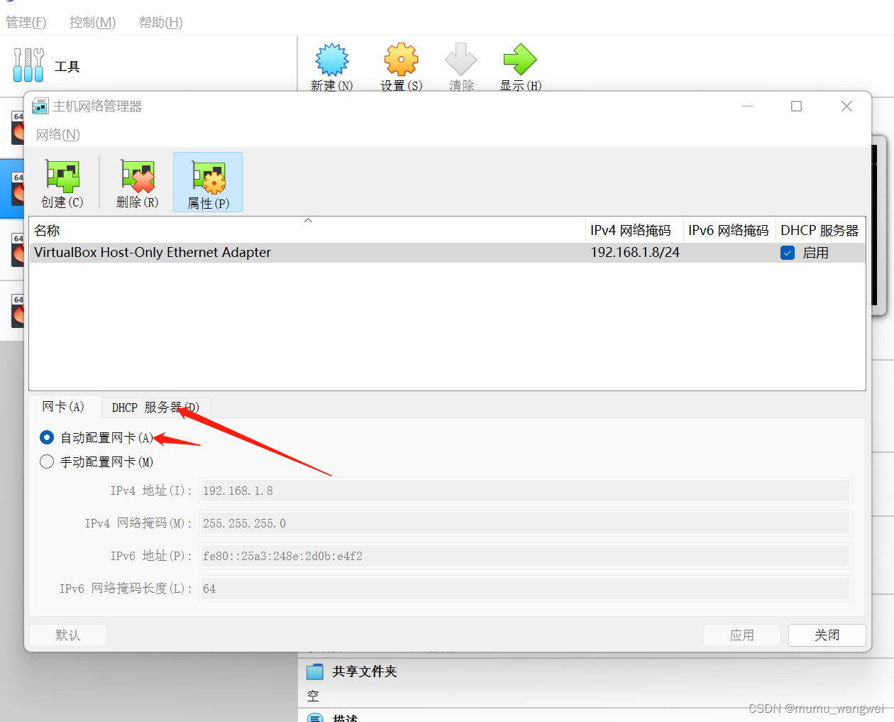 第一种,本机默认动态ip(例如192.168.0.122)的方式,如下图设置好网络,这种的优势是达梦数据库导入dmp文件不会报错,弊端是动态ip经常变动,如果链接虚拟机里的数据库需要经常变动ip地址