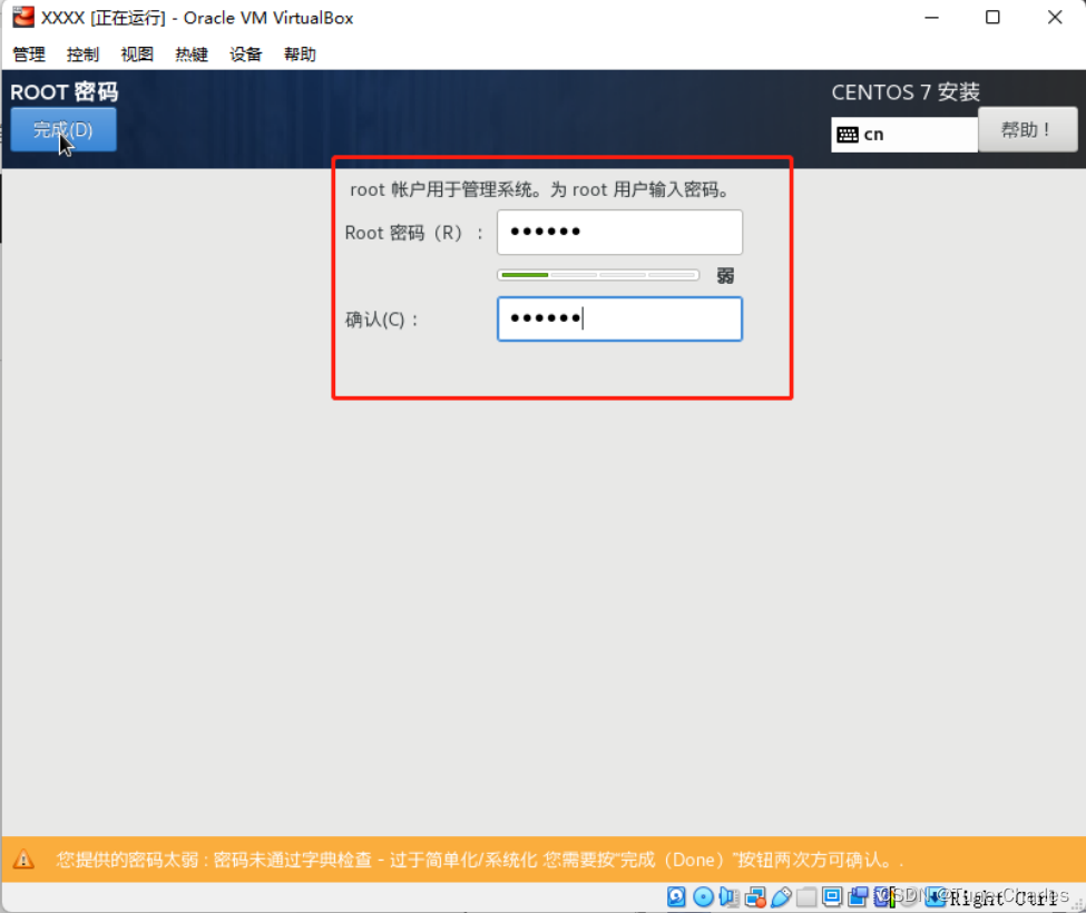 然后点击开始安装,随意设置密码为XXXXXX即可